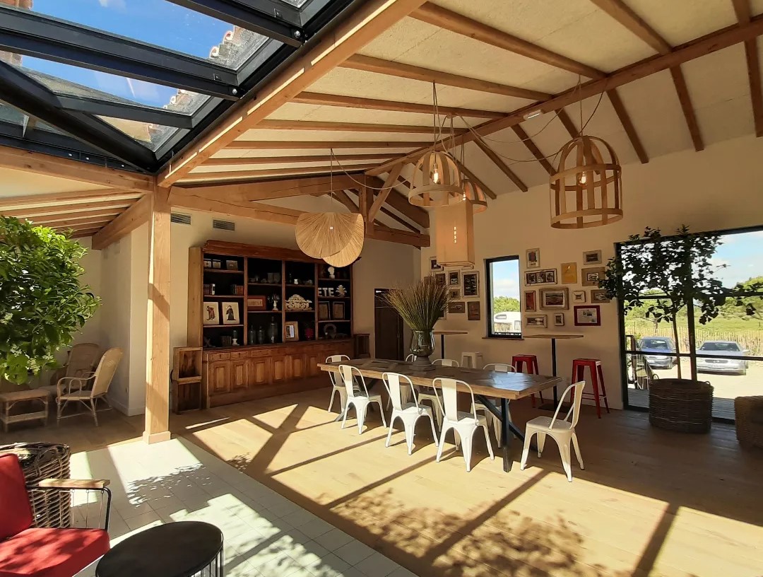 L’ouvrage repose sur une plateforme surélevée et un système constructif mêlant bois, isolation biosourcée et mur en paille. Des choix de conception qui valorisent les matériaux naturels, l’isolation performante et l’intégration paysagère, tout en révélant l’importance des contraintes environnementales du littoral occitan et les objectifs de confort tant pour la clientèle que pour les personnes qui travaillent dans ce lieu.