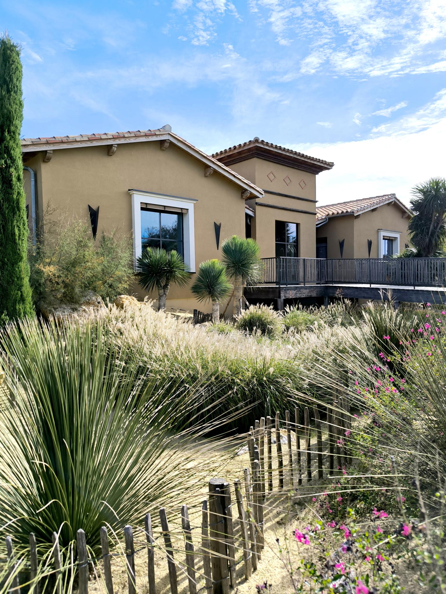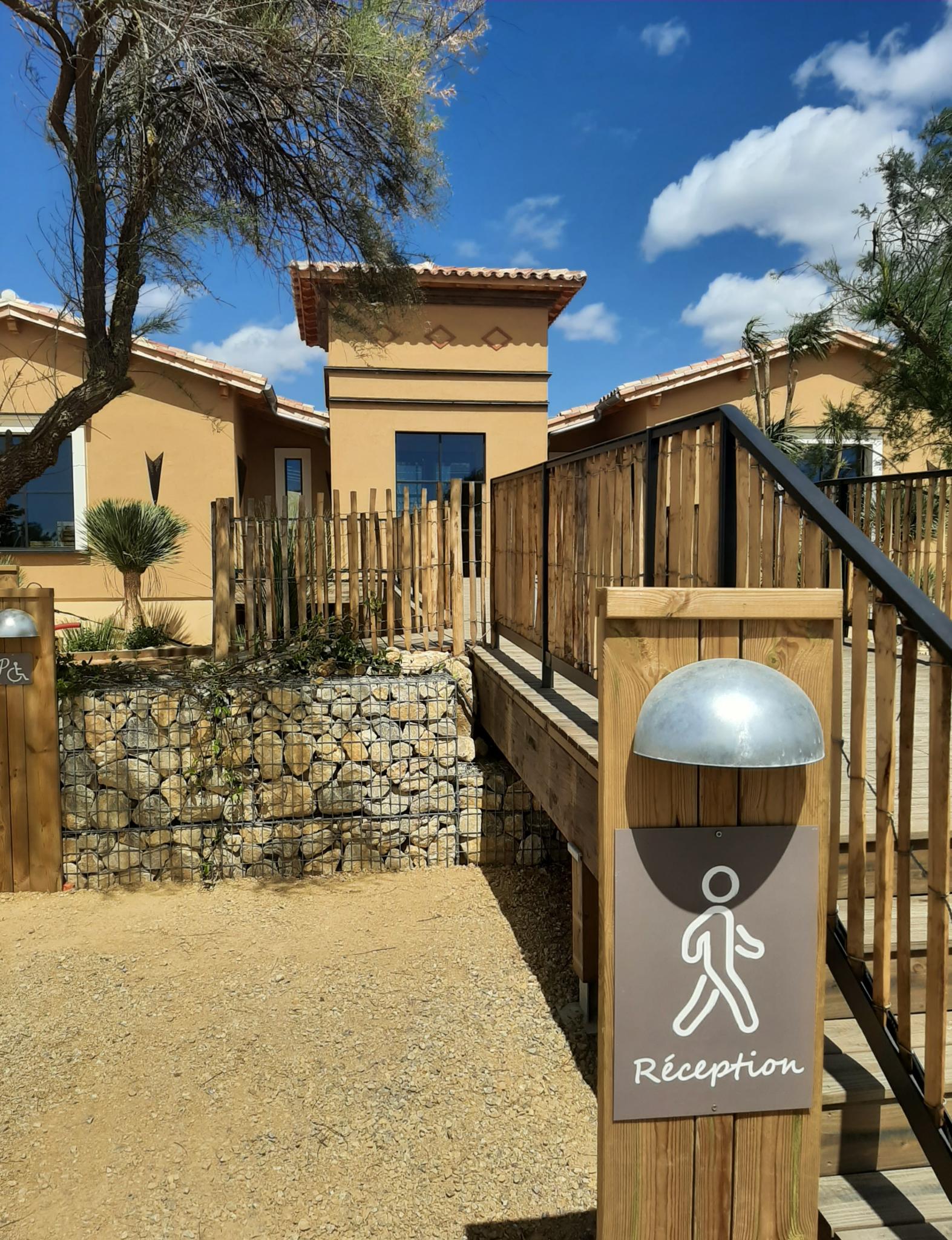 Véritable vitrine de l’établissement, modèle d’hôtellerie de plein air haut de gamme en Occitanie, l’espace est pensé comme une porte d’entrée paysagère offrant une transition douce entre l’extérieur et l’expérience d’un camping unique.