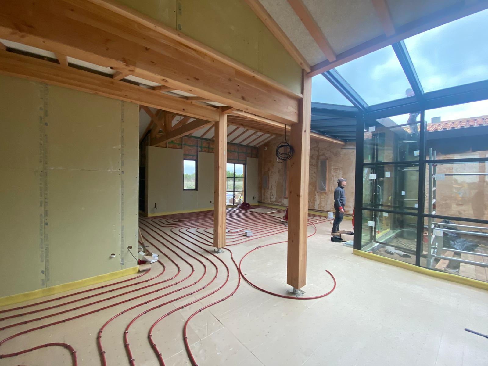 Géocooling (Utilisation de la fraîcheur du sol pour rafraîchir l’intérieur grâce à la Géothermie via le plancher et les ventilo-convecteurs )