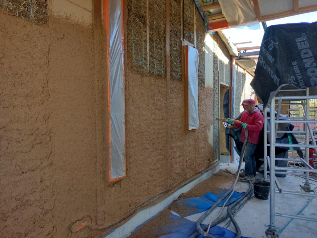 Mur refend intérieur en BOTTES DE PAILLE et ENDUITS TERRE